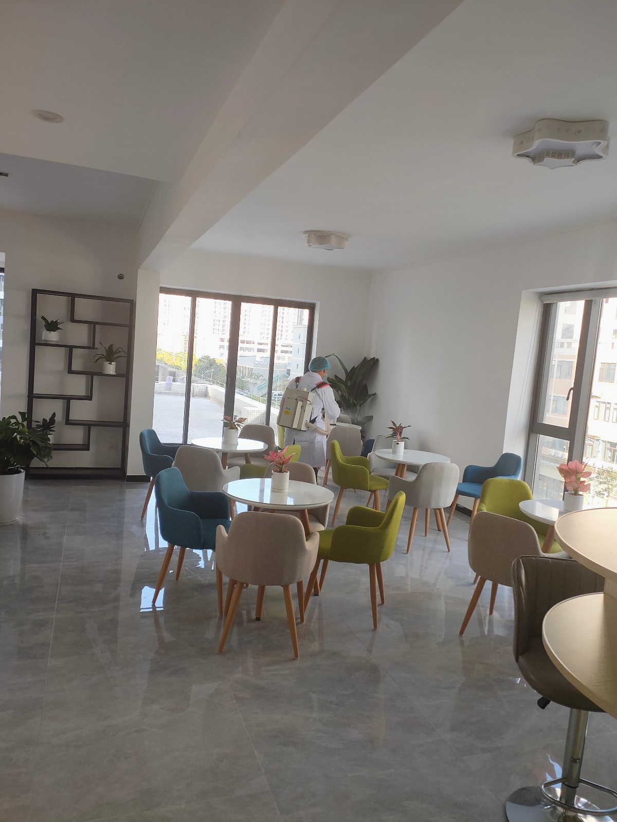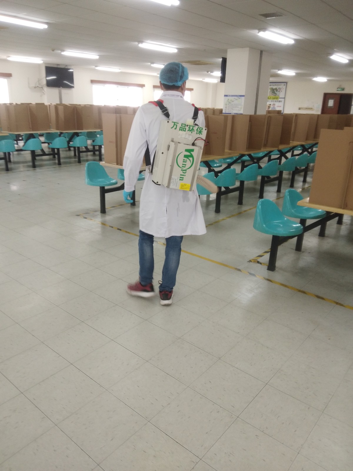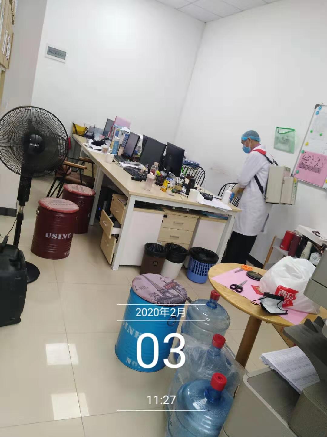 2020年2月12日為廣東海德世拉索系統(tǒng)有限公司廠區(qū)和餐飲區(qū)消毒現(xiàn)場。