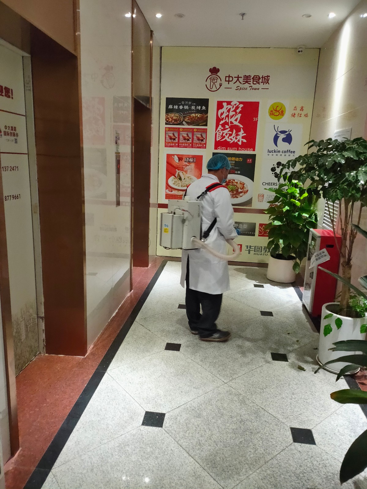 2020年1月30日百信廣場西區(qū)消毒現(xiàn)場。